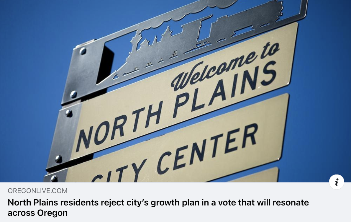 North Plains residents reject city’s growth plan in a vote that will resonate across Oregon