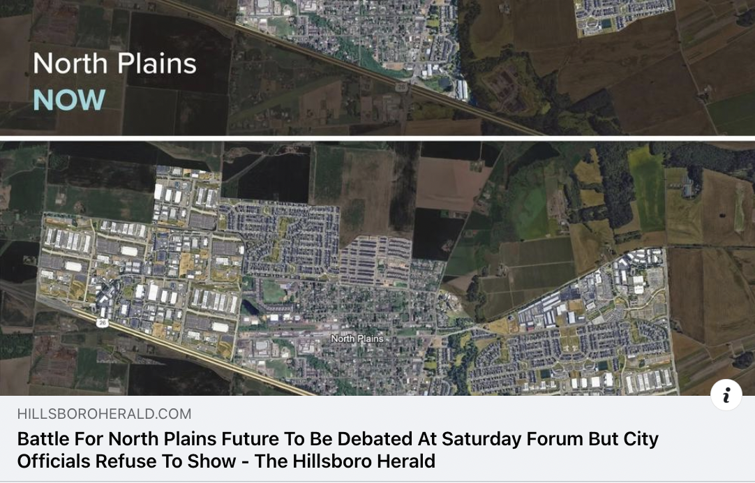 In the Hillsboro Newstimes article, North Plains voters appear to reject city push to expand urban growth boundary, Mayor Lenahan makes statements that seem to indicate she wants to extend the olive branch to her people, but at the same time, she blamed many of them from spreading misinformation about the campaign. Based on my coverage, that is one of the most disingenuous things I have ever heard. It indicates North Plain’s real issues reside within her and her Council. I know all sides will come together, and North Plains can grow smartly, just as it has slowly since the first time I was there 55 years ago.