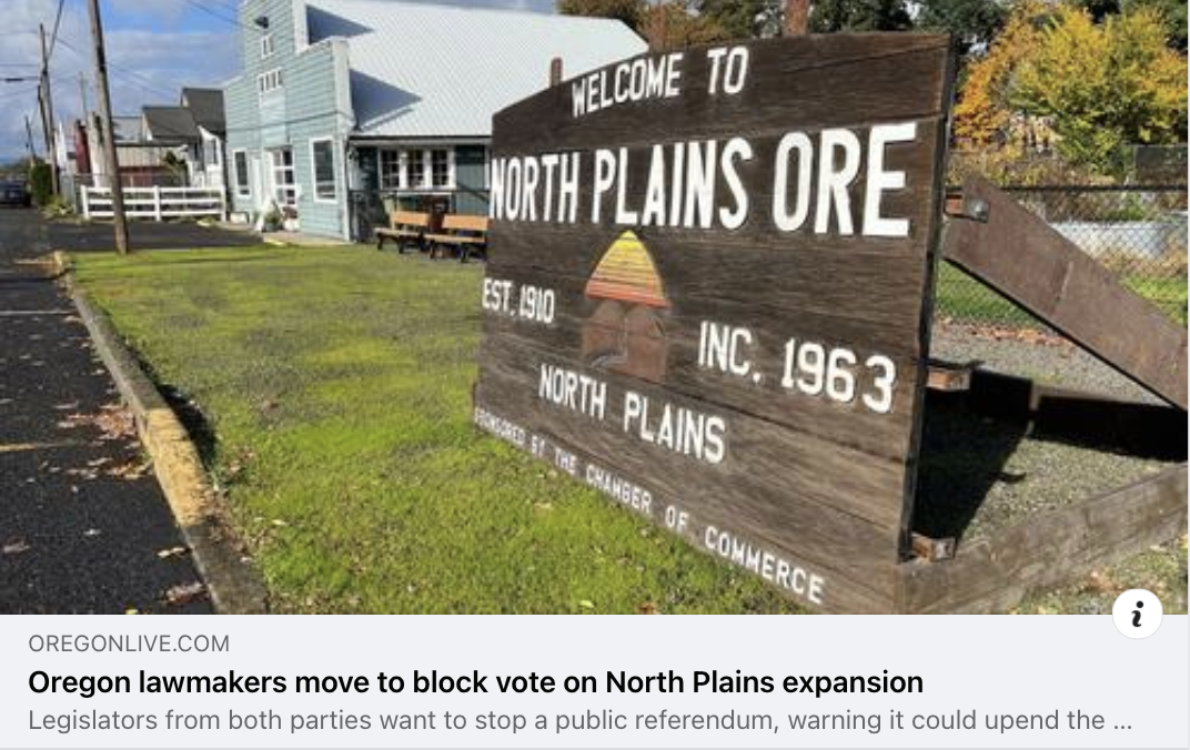 The Legislature took the extraordinary step of moving to stop the people of North Plains from voting in the May 21 election on whether their community should grow.